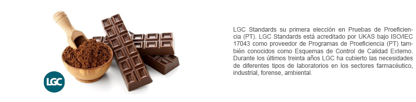 LGC QCS715 | CUANTITATIVO DE HUMEDAD, GRASA, NITRÓGENO TOTAL, ÁCIDO BUTÍ- RICO, AZÚCARES TOTALES Y TEOBROMINA. 1 x 150g | |